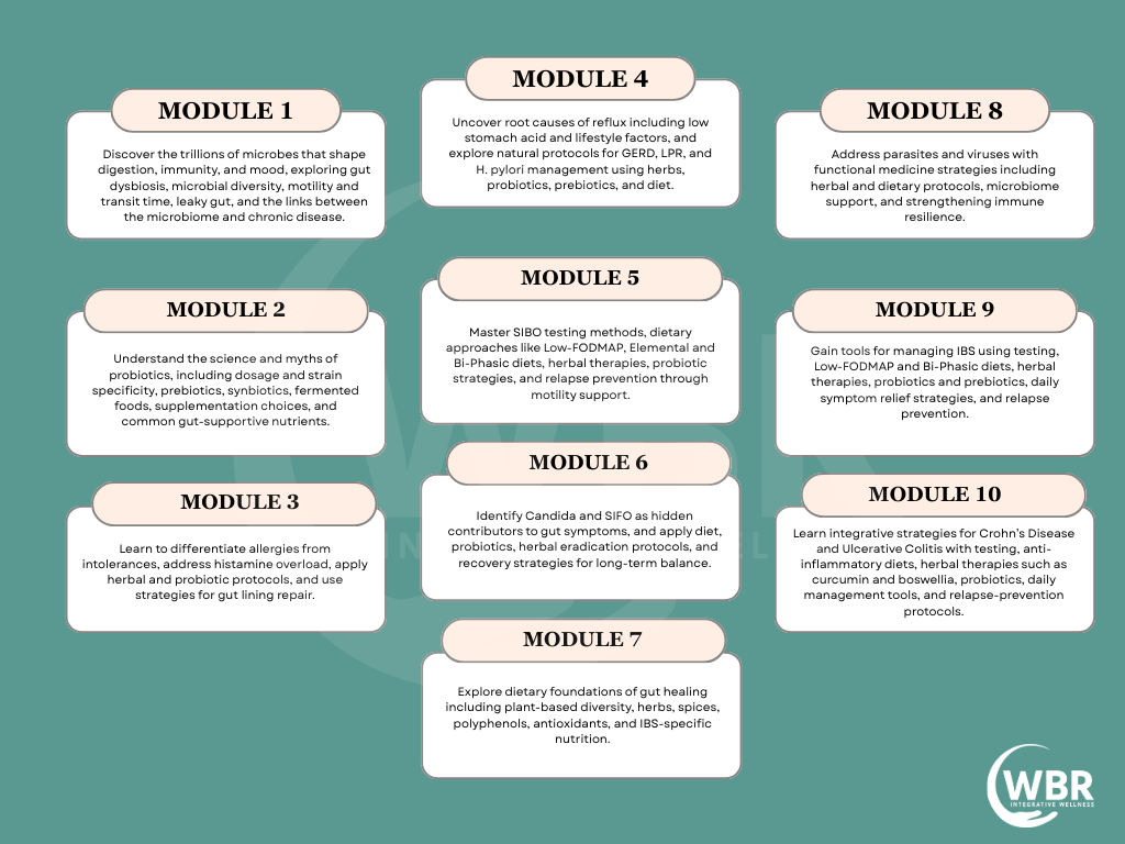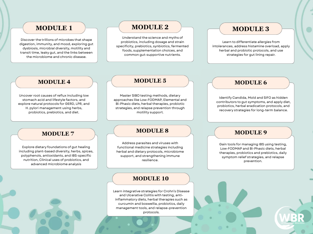 Master SIBO testing, diet strategies (Low-FODMAP, Elemental, Bi-Phasic), herbal therapies, and relapse prevention protocols.